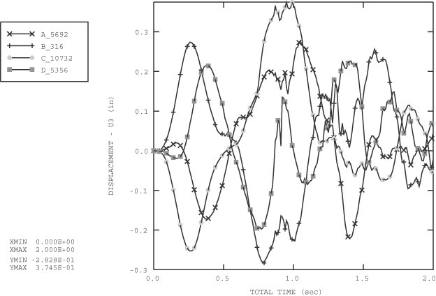 این مثال، استفاده از شبکهبندی تطبیقی را برای مدلسازی تلاطم سیال غیرلزج درون یک مخزن بافلدار نشان میدهد. پاسخ کلی سازه ناشی از کوپلینگ بین آب و مخزن، به جای یک راهحل دقیق در سیال، مورد بررسی قرار میگیرد. شبکهبندی تطبیقی امکان بررسی این پاسخ را در دورههای زمانی طولانیتر از رویکرد لاگرانژی خالص فراهم میکند، زیرا از درهمتنیدگی شبکه که در حالت دوم رخ میدهد، جلوگیری میشود.